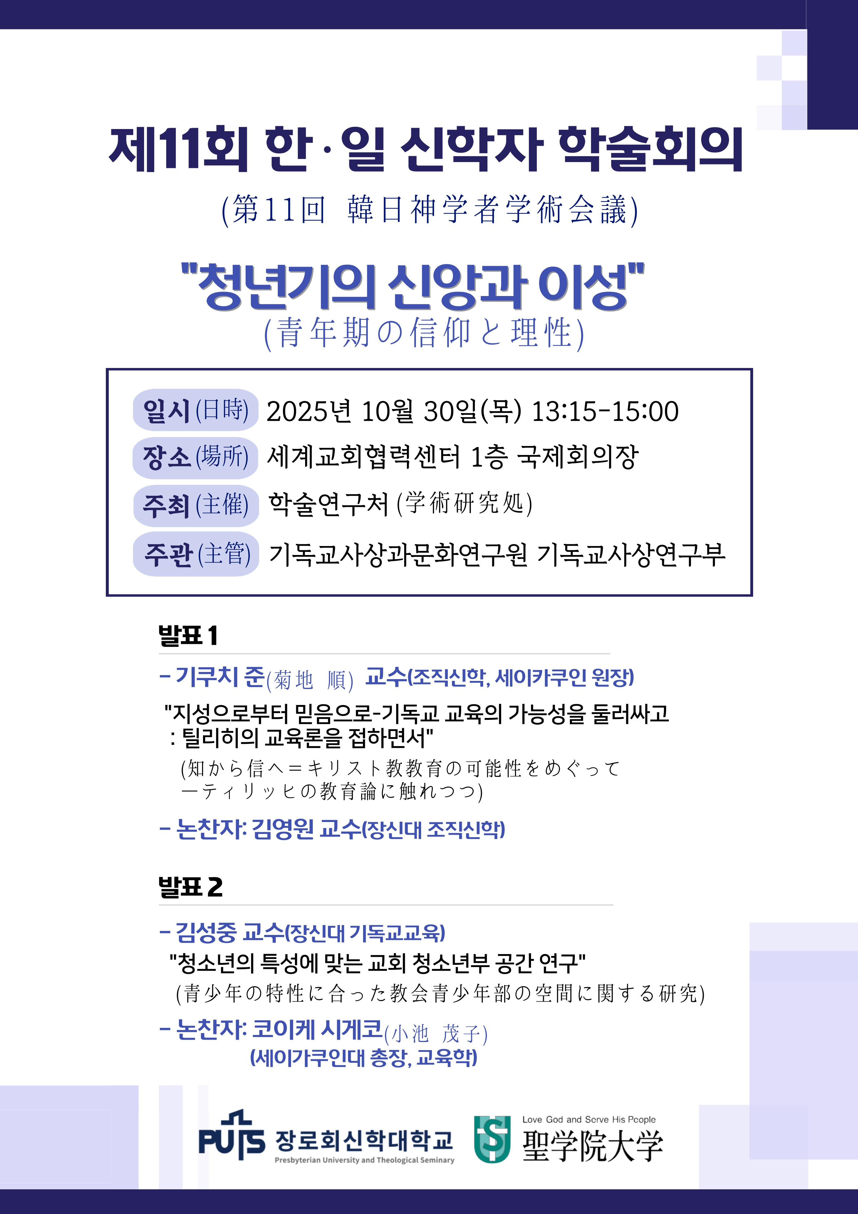 (知から信へ=キリスト教教育の可能性をめぐって―ティリッヒの教育論に触れつつ)- 논찬자: 김영원 교수(장신대 조직신학)