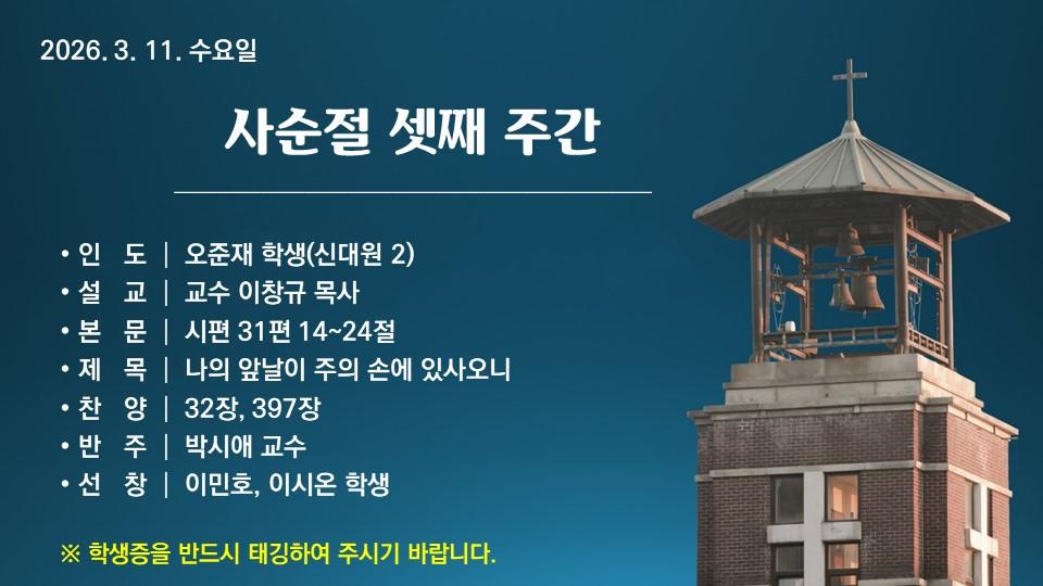 장로회신학대학교에서 제작한 예배와 강좌를 나누는 열린 공간입니다.